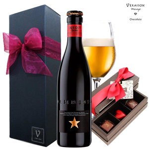 ビールは、シャンパンのようなワインのような風味もあり、おいしいといってもらえました、チョコもおいしかった、とのこと。豪華な包みでもあり、ちょっと変わったバレンタインギフトを喜んでもらえました。